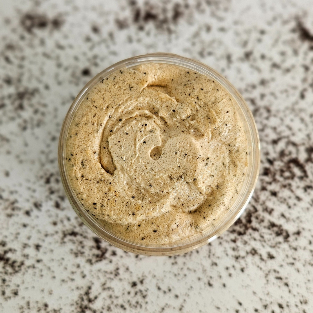 Like a morning brew for skin. This creamy, soapy based scrub lathers up like a dream while exfoliating with real coffee grounds for that fresh-start feeling. Buffs away dullness, smells like your favorite café, and leaves you soft, smooth, and wide awake(ish)