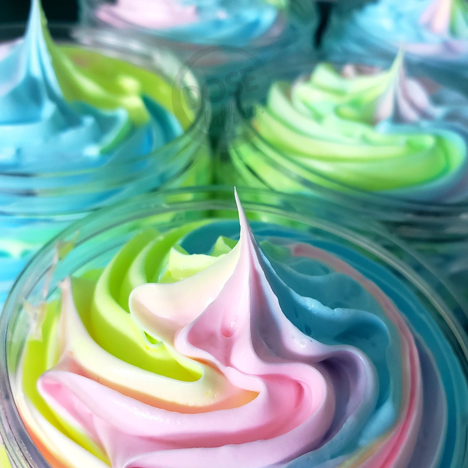 Smells like Saturday morning cartoons and a fresh bowl of Fruit Loops. This whipped soap is creamy, bubbly, and bursting with rainbow cereal nostalgia. Suds up in technicolor and relive your breakfast-scented glory days — no remote or commercials required 🥣